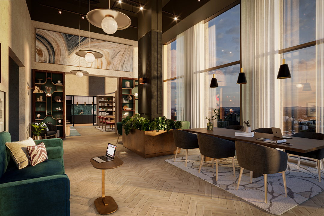 This 15-storey landmark development features 149 one and two-bedroom luxury apartments finished to world-class standards. Residents will enjoy over 14,000 sq ft of amenities – from a sunlit 20m indoor pool and spa facilities to a skyline gym, yoga studios, co-working lounges, private dining suites, and rooftop terraces. A 24/7 concierge and security service ensures comfort and peace of mind, while a 9,300 sq ft private garden connects the towers, providing a green oasis in the city centre.